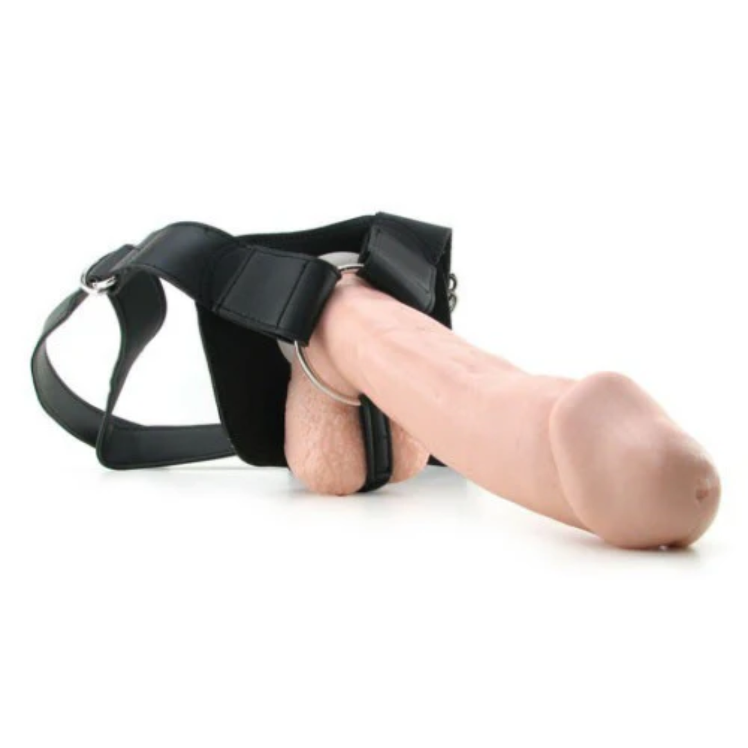Take strap-on sex to the extreme with the Fetish Fantasy Extreme Hollow Strap-on. This heavy duty hollow strap-on features a 12-inch-long, 2-inch-thick, phthalate-free dildo held in place by a steel o-ring and leather harness.