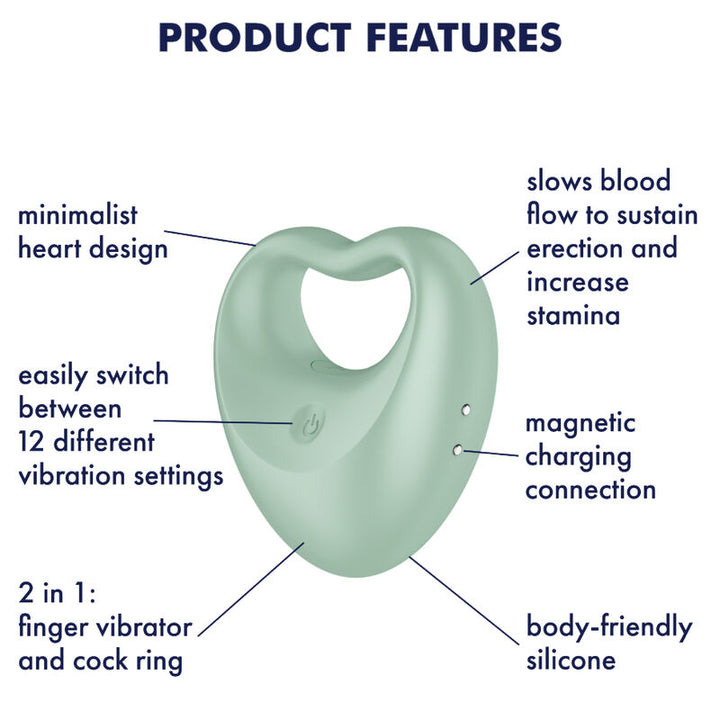 ❤ The Satisfyer Perfect Pair 3 is a 2-in-1 stimulator that can be used as a cock ring or as a clitoral stimulator. With an elegant and minimalist heart-shaped design, this toy offers versatility and discretion. When used as a cock ring, it stimulates the testicles and the penis. As a lay-on stimulator, it can stimulate several erogenous zones. It has a powerful motor, offers 12 vibration modes, from gentle to intense, easily controlled with the 1-click button.