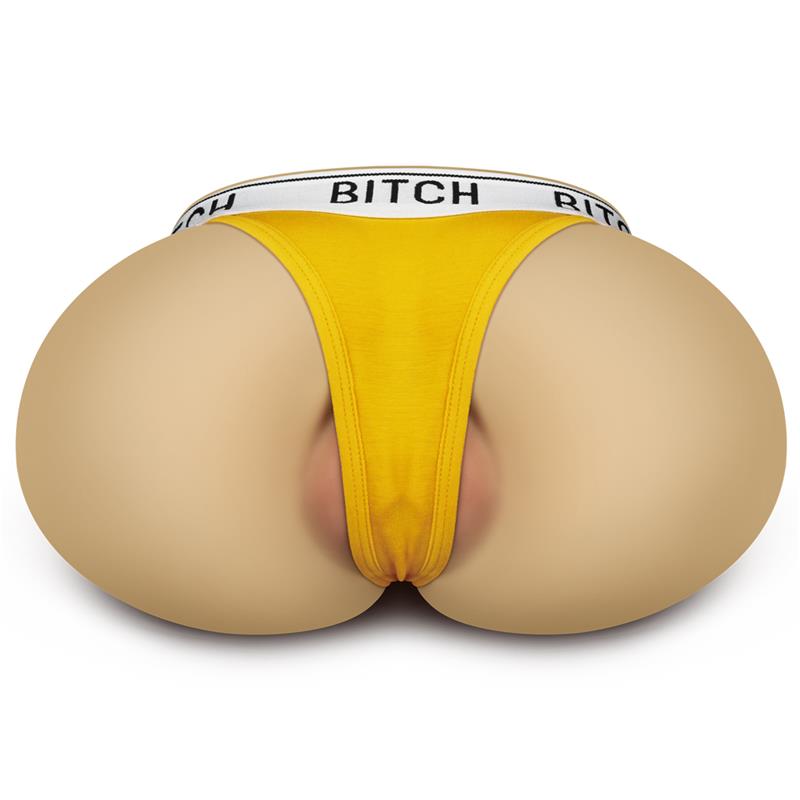 ❤ Masturbator with an ideal design. This butt-shaped masturbator features a yellow thong. It is beautifully designed and modeled after a model for a more authentic experience. The anus insert is much tighter and has numerous curves. You can lay it down or hold it close to you while exploring either of its two intricate inserts. Made from