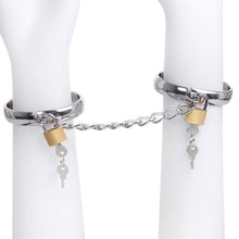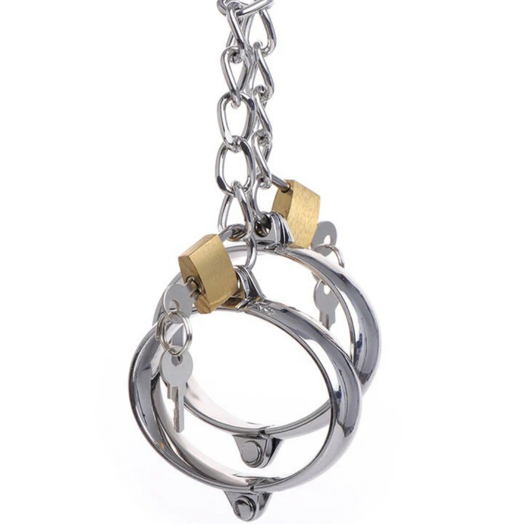 ❤ Descubra a sofisticação e a robustez das algemas de metal com cadeado da nossa coleção. Estas algemas são perfeitas para momentos de submissão e controle, oferecendo segurança e conforto. A corrente mede 16 cm, permitindo uma restrição eficaz sem comprometer a mobilidade necessária para o prazer. As algemas têm diâmetros de 5,5 cm e 6 cm, ajustando-se confortavelmente aos pulsos.