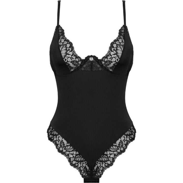 ❤ Prepare-se para uma noite única, cheia de ternura, proximidade e paixão. O body Bellastia vai encantá-la com o seu conforto e encorajá-la a viver momentos de ternura com um corte arrojado e uma combinação chique de tecidos. Fabricado em tecido preto, este body combina elementos de renda e tecido liso para criar um visual sofisticado e sedutor. A parte central é decorada com renda delicada, que se estende desde o peito até a parte inferior, criando um contraste visual deslumbrante. O design apresenta copas com aro que proporcionam suporte e realçam o peito, enquanto um laço decorativo entre os seios adiciona um toque de charme. As alças finas e ajustáveis garantem um ajuste ergonómico e confortável. A parte inferior é de corte cavado, alongando as pernas e acentuando a silhueta. A combinação de renda e tecido liso cria um visual harmonioso e elegante, ideal para momentos especiais onde a elegância e a sensualidade encontram-se de forma perfeita.