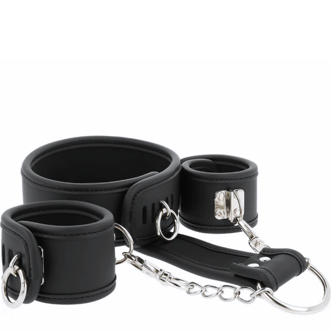 Conjunto Algemas Pulso, Coleira Postura e Hogtie Fetish Submissive