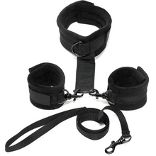 Conjunto Algemas Pulso, Coleira, Trela e Hogtie BondagePlay