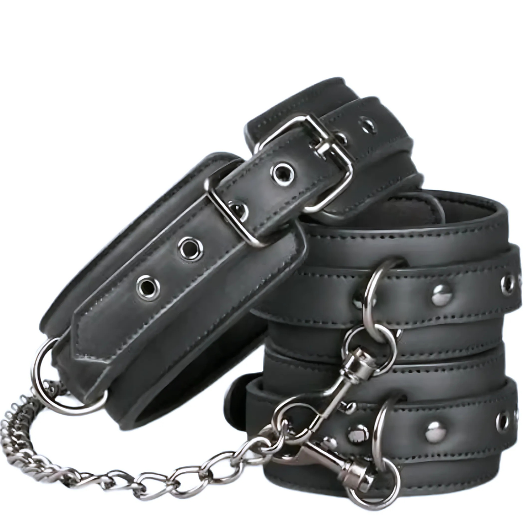 ❤ Este conjunto apresenta uma coleira e algemas de tornozelo com uma corrente que facilmete poderá ser colocada ou retirada e usada para várias posições de restrição. Fabricado em pele vegan e almofadado no interior para que possa usar por quanto tempo desejar, de forma confortável.