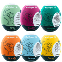 Apresentamos uma inovação da Satisfyer, a série EGGCITED, uma coleção de ovos masturbadores De material flexível, esses ovos mastubadores são fabricados com Hydro-Active, material revolucionrio onde não ser necessário usar lubrificante, basta aplicar um pouco de água e a sensação ser completamente realista e claro, escorregadia e agradável. De material muito flexível e texturas internas, consegue estimular ao máximo Conjunto Masturbador Egg 6er: RIFFLE, BUBBLE, NAUGHTY, CRUNCHY, SAVAGE &FIERCE