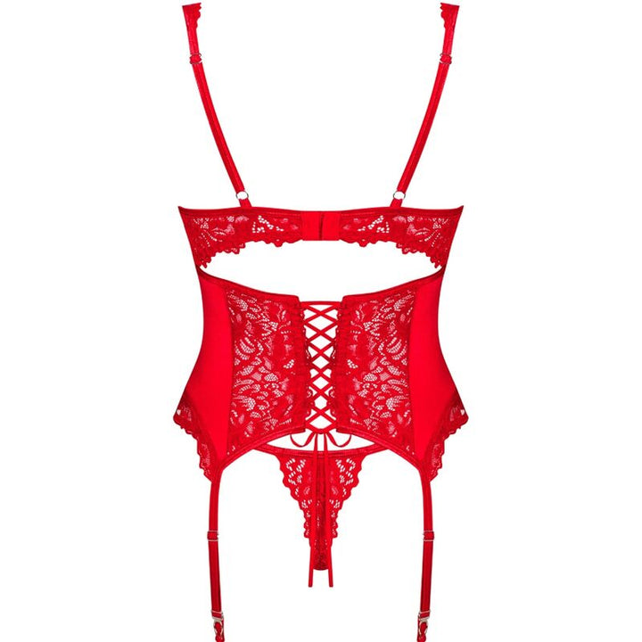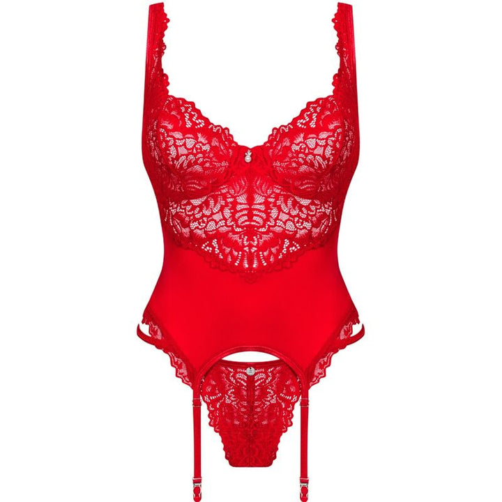 ❤ Está ansioso por um encontro íntimo eletrizante? Este corpete vermelho profundo da Obsessive irá garantir que toda a atenção se concentre em si. Com alças ligas, fecho de vários etapas e alças ajustáveis para um ajuste ergonómico, copas com armação e laços delicados que acentuam a figura, renda tentadora que atrairá todos os olhares e uma composição de 94% Poliamida e 6% Elastano para garantir conforto e sensualidade. Não perca a oportunidade de experimentar a elegância, sensualidade e amor bordado neste conjunto de lingerie vermelho.