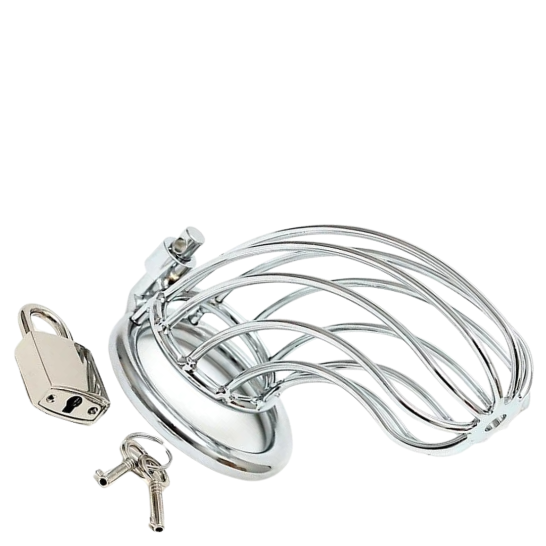 ❤ Gaiola de castidade masculina de metal , com dois anéis de aperto e cadeado. Perfeita para viver noites de BDSM sem limite.