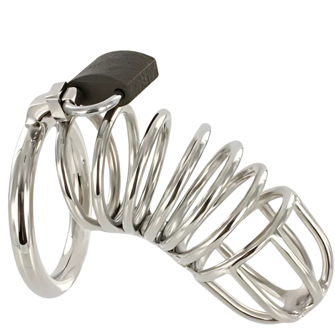 ❤ Esta gaiola de castidade em espiral é fabricada em aço, garantindo durabilidade e segurança. Com um diâmetro de entrada da jaula de 40 mm e serve para um comprimento de pénis relaxado de 10 cm a 13 cm.