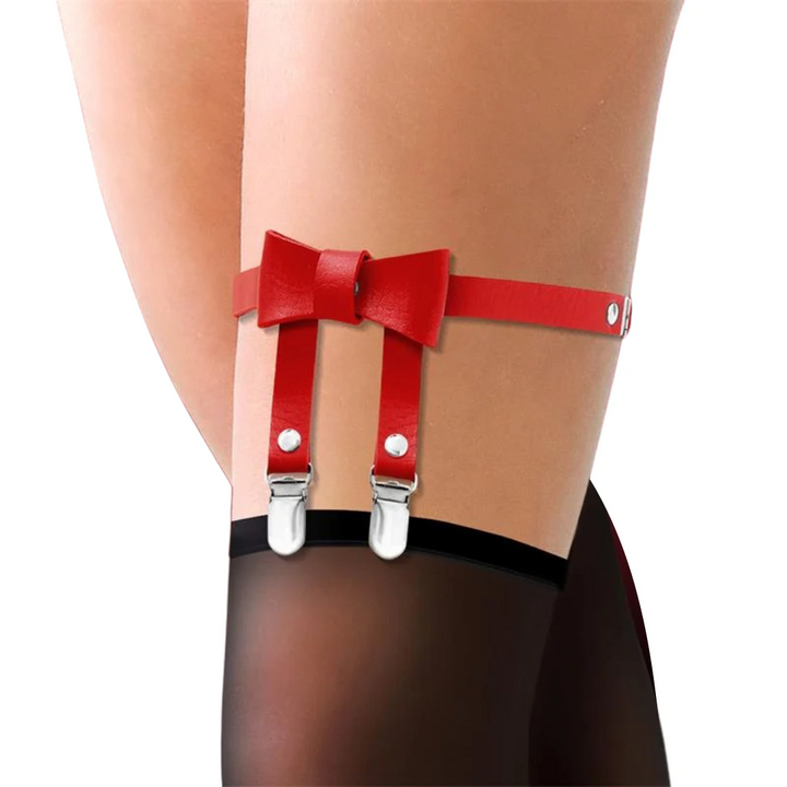 ❤ Uma liga de pele vegan com detalhes exclusivos e sofisticados. Esta peça apresenta um delicado arco no centro, complementado por duas elegantes tiras que conectam a liga às meias, adicionando um toque sensual ao seu look.