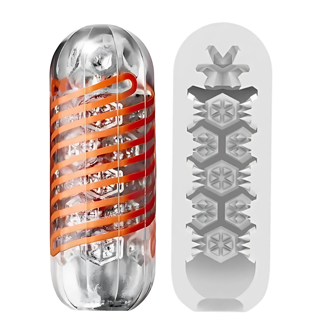 ❤ Design: Ovo masturbador com textura interior para uma sensação de movimento em espiral. Versão hexa: Espiral de placas hexagonais com bordas pontiagudas.