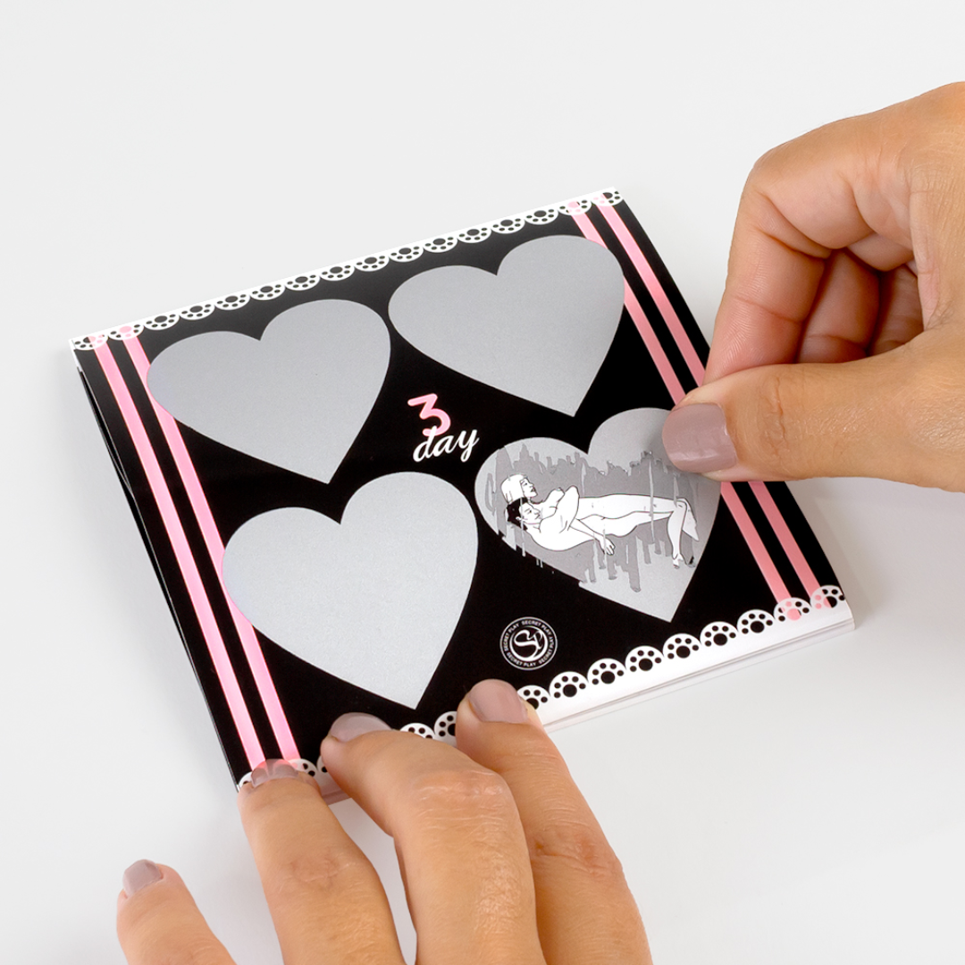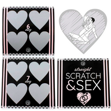 ❤ Este jogo é o clássico jogo da raspadinha, mas com prémios dos mais picantes. Raspe é uma opção todos os dias e, se estiver com sorte, descobrirá uma nova posição com a qual poderá desfrutar como casal. Há quatro opções diferentes para raspar para cada dia, tendo 7 dias no total. Pode terminar a corrida de uma semana e depois começar novamente desde o início, descobrindo as posições restantes, permitindo-lhe desfrutar de 4 semanas de jogo. Scratch&Sex existe em três versões diferentes, uma para cada tipo de orientação sexual. Neste caso, é para casal de homem e mulher.