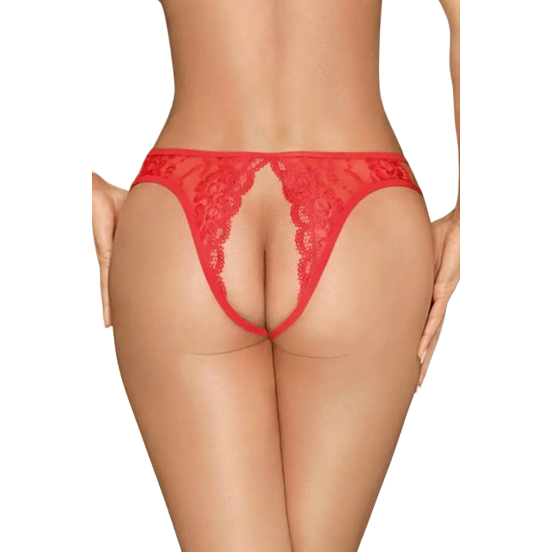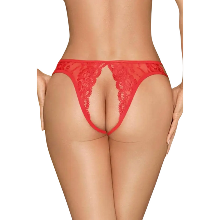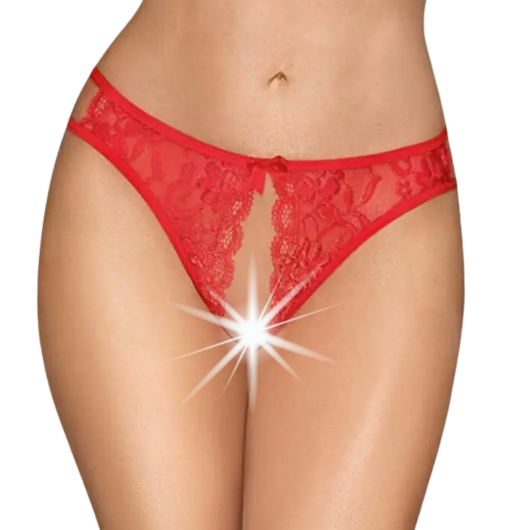 ❤ Design: Tanga de renda floral com laço decorativo e virilha aberta.